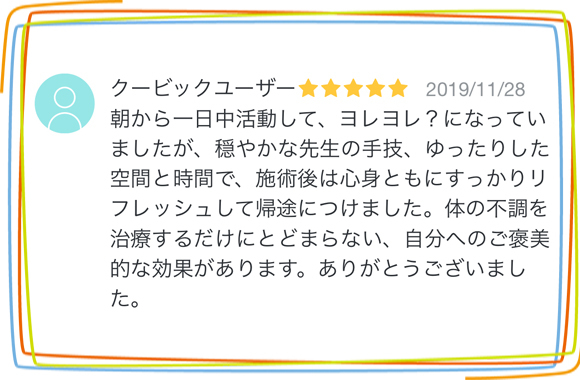 ソフトなテクニックを中心に、身体が本来持っている自然治癒力を引き出し、