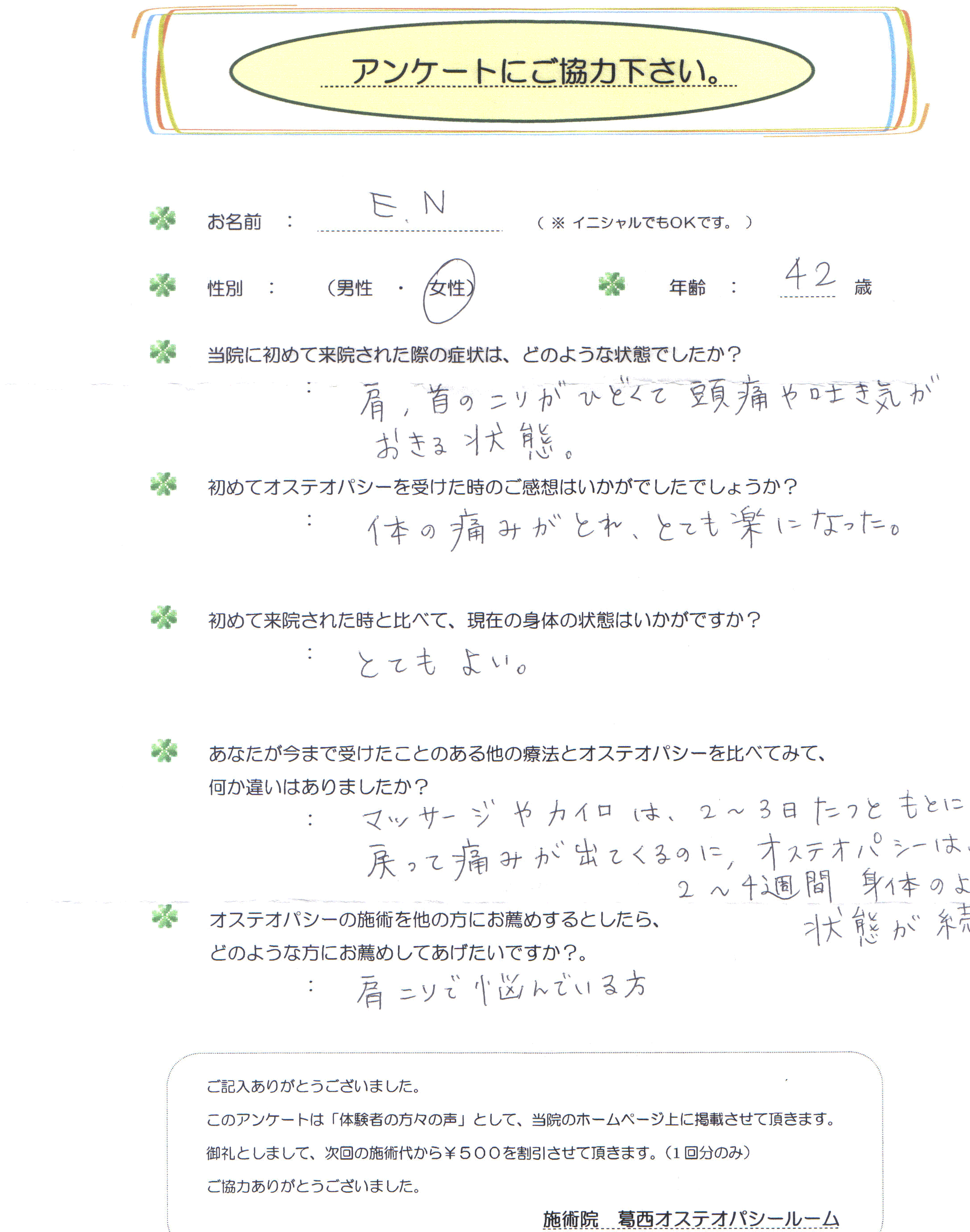 Q:オステオパシーの施術を他の方にお薦めするとしたら、